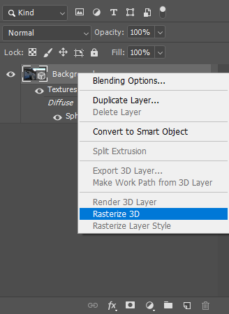 8)파노라마 이미지의 레이어를 래스터화하려면 레이어를 마우스 우클릭한후 rasterize 3D를 선택합니다.