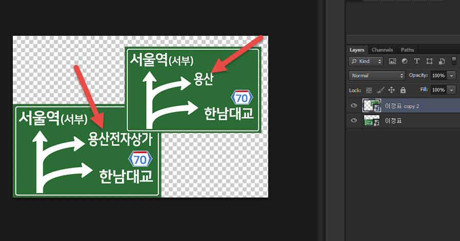 4)스마트 오브젝트의 구성 레이어를 수정하여도 원본과 복사본은 별개로 독립되있음을 확인할수있습니다.