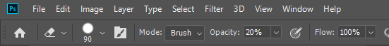 8)기본적으로 브러시 도구(brush tool) 그리고 지우개 도구(eraser tool)의 브러시 옵션과 설정은 독립적으로 설정되어있습니다. eraser tool을 선택하면 브러시의 옵션과 설정이 변하는것을 확인할수있습니다.