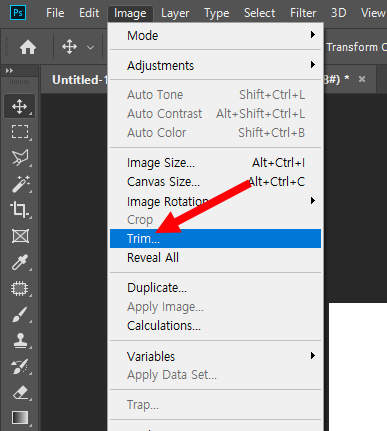 2)상단의 image 메뉴에서 trim을 선택합니다.