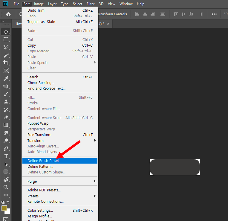 4)상단의 edit 메뉴에서 define brush preset을 선택합니다.