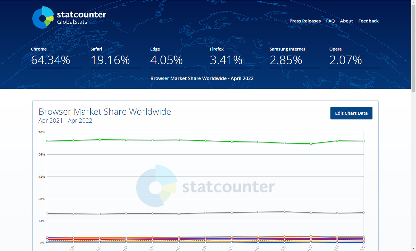 statcounter는 웹 트래픽 분석 웹사이트로 무료로 제공하는 기본 서비스에서 모바일, 브라우저, 운영체제, 소셜미디어, 기타등의 시장 점유율 및 그래프를 확인할수있다.