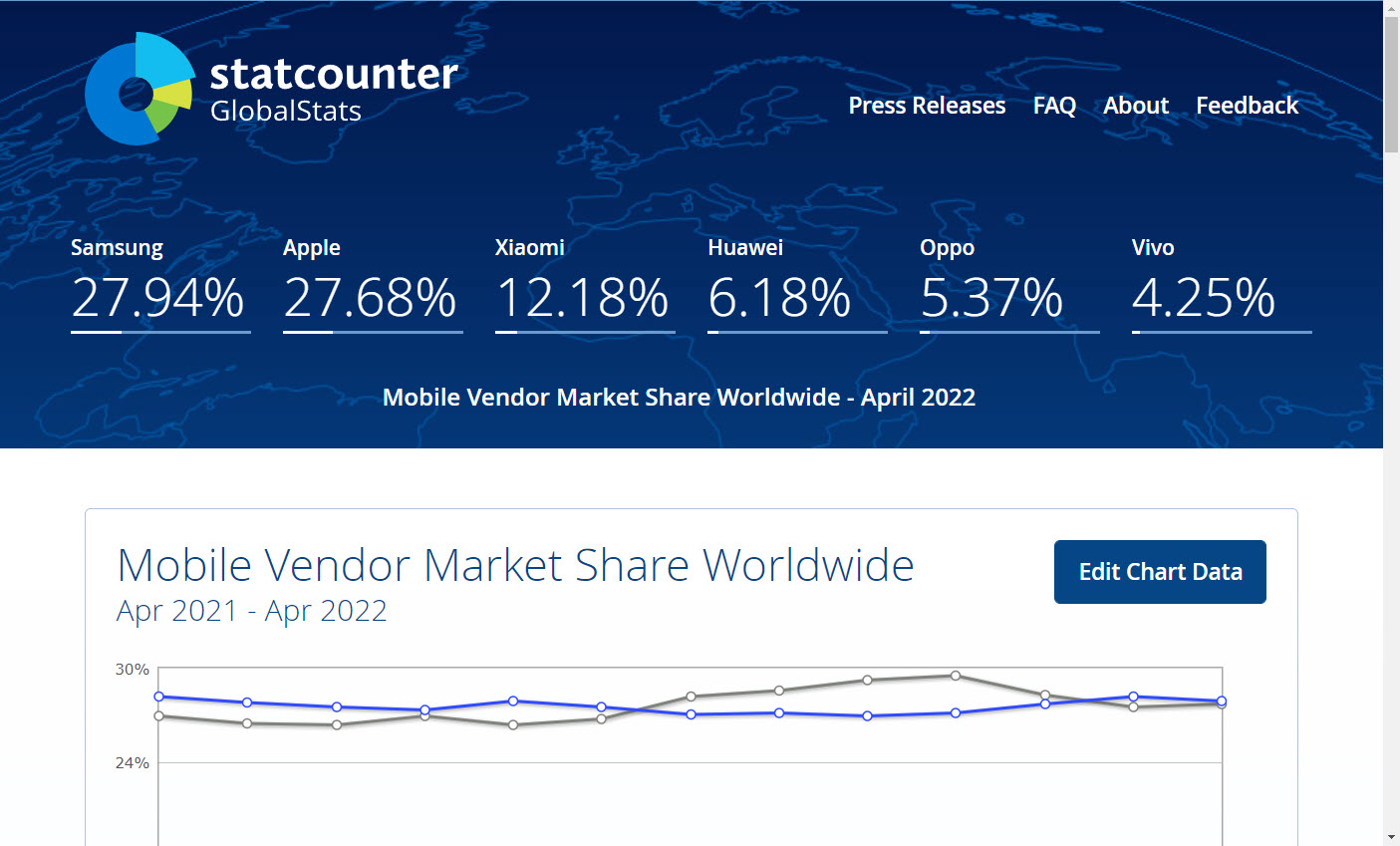 스탯카운터(statcounter)에서 스마트폰 시장 점유율 확인하기
