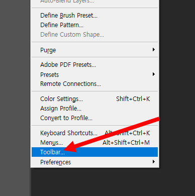2)상단의 edit 메뉴에서 toolbar로 이동합니다.
