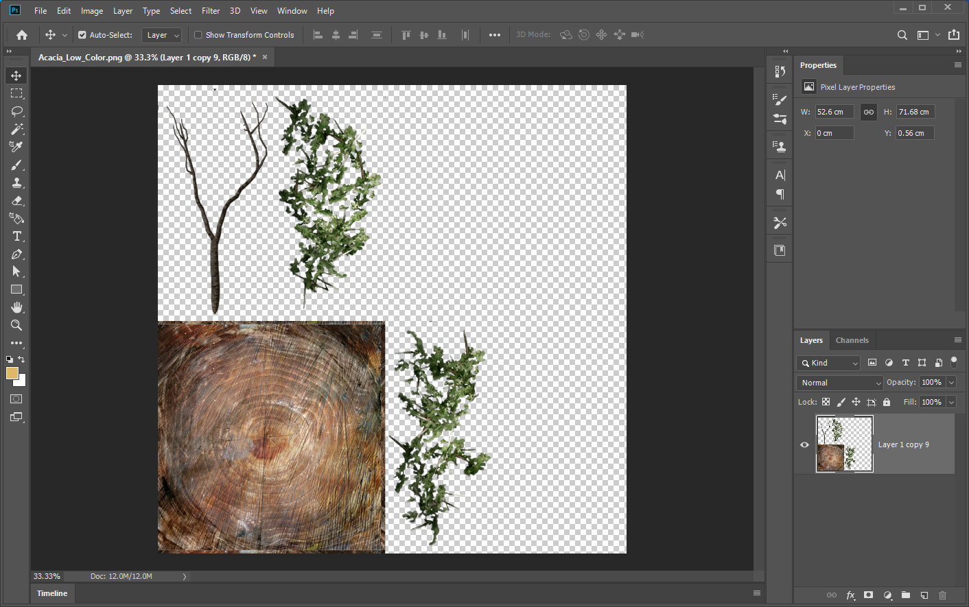2)레이어에서 투명한 영역은 checker 패턴으로 표시됩니다.