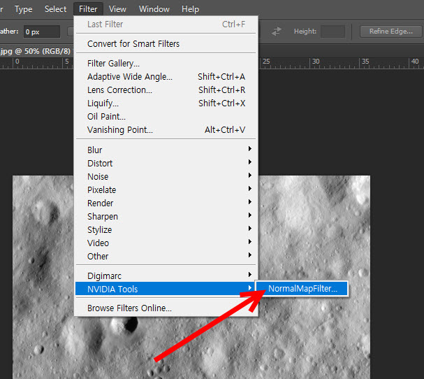 6)상단의 filter 메뉴에서 NVDIA Tools의 NormalMapFilter로 이동합니다.