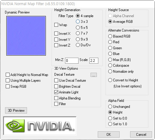 포토샵(photoshop)에서 텍스처 노말맵(normal map) 생성 플러그인(NVIDIA Texure tools) 사용하기