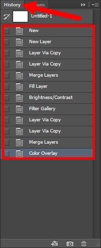 2)history 패널에서 최근에 작업한 내용 및 사용한 명령들이 기록되어있는것을 확인할수있습니다..