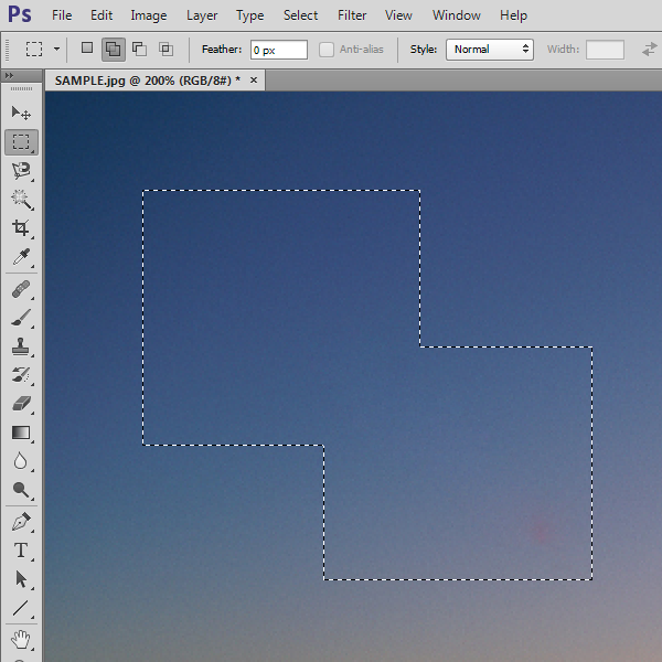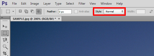 7)Marquee Tool의 Style옵션이 기본 normal로 설정되어있는것을 확인할수있습니다.