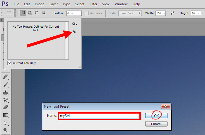 11)Create new tool preset을 클릭하고 새로운 툴 프리셋을 저장합니다.