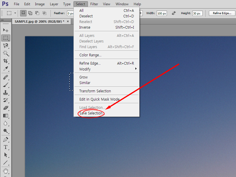 6)상단의 Select 메뉴에서 Save Selection을 선택합니다.