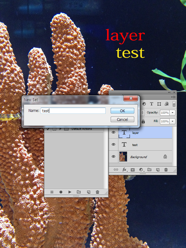 6)새로운 세트(test)가 추가된것을 확인할수있습니다. 세트를 선택하고 아래 표시한 Create new action를 클릭하면 새로운 액션을 생성합니다.