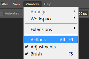 2)상단의 Window 메뉴에서 Actions을 선택합니다.