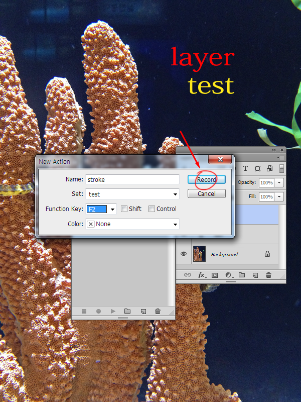 7)액션의 이름, 실행 단축키(funtion key)등을 설정하고 record를 클릭합니다.
