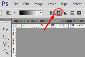 9)그라디언트 도구(gradient tool)를 선택하고 옵션에서 radial gradient를 선택합니다.