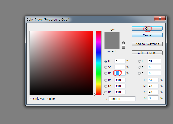 8)새로운 레이어를 생성하고 배경색으로 중간톤의 무채색을 선택합니다.
