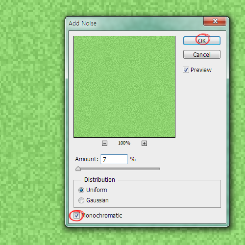 2)상단의 filter 메뉴에서 add noise를 선택합니다. amount 수치를 입력하고 monochromatic에 체크한후 확인합니다.