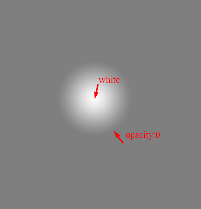 14)중심에서 밝은색으로 시작하여 불투명도의(opacity) 값이 0으로 끝나는 radial gradient가 생성된것을 확인할수있습니다.