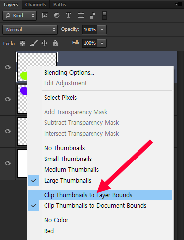 포토샵(photoshop)에서 레이어 썸네일 확대하기(clip thumbnail to layer bounds)