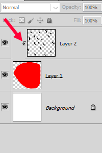 4)클리핑 마스크를 사용중인 레이어는 레이어 패널에서 아래와 같이 표시됩니다.
