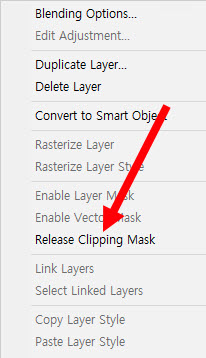 5)클리핑 마스크를 비활성화하려면 레이어를 선택 마우스 우클릭하고 release clipping mask를 선택합니다.