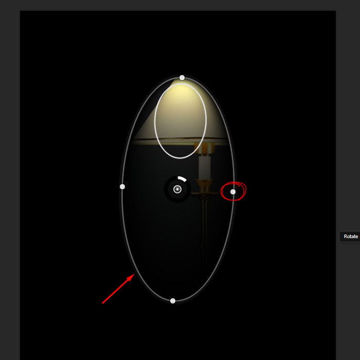 10)아래 표시한 곳을 클릭, 드래그해서 라이트를 변형(회전, 스케일)하고 영역의 내부를 클릭, 드래그해서 라이트를 이동합니다.