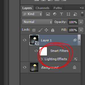16)레이어의 스마트 필터(smart filters)에 조명 효과(lighting effects)가 추가된것을 확인할수있습니다.