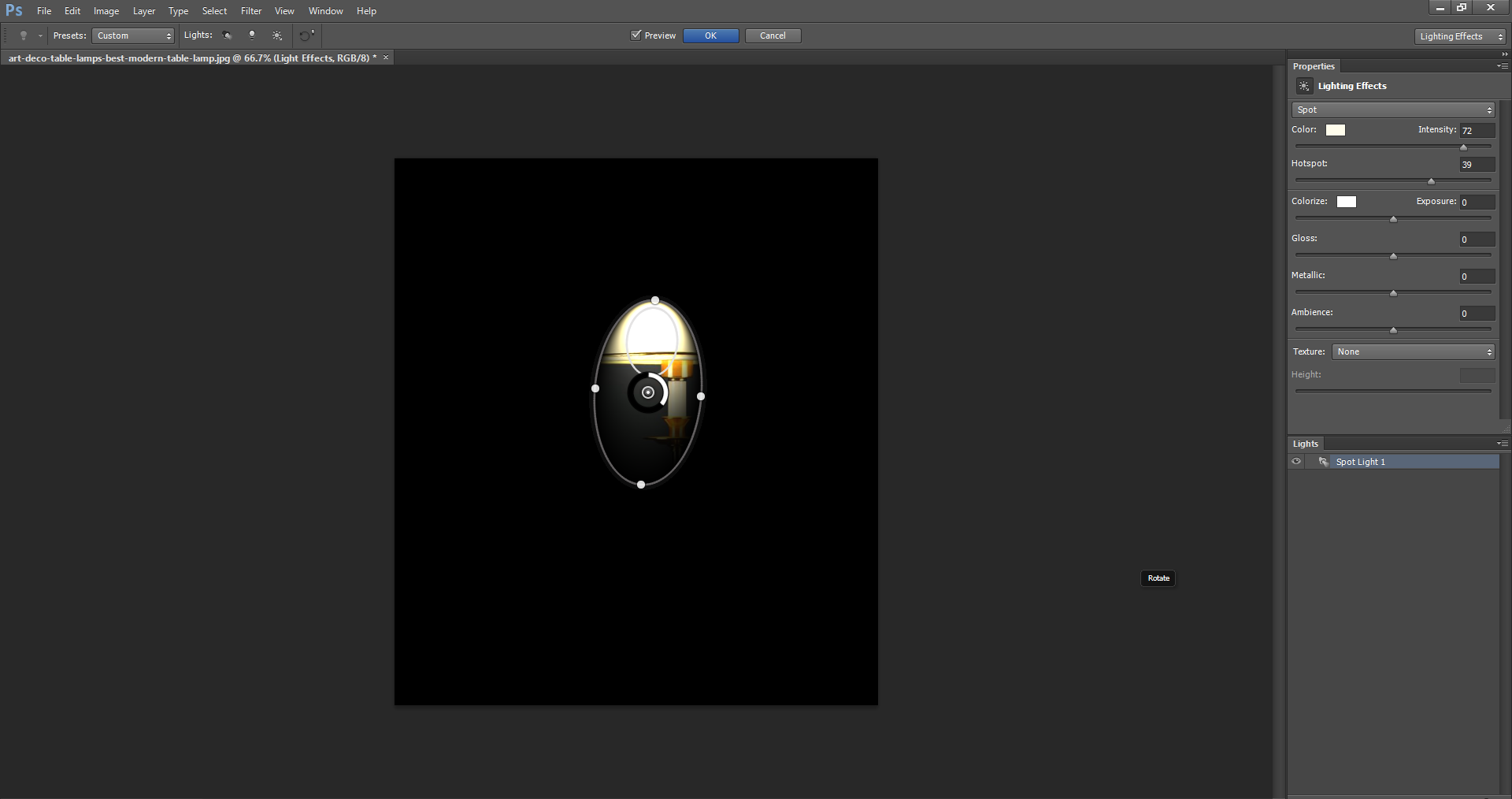(스마트 필터를 더블 클릭해서 조명 효과 필터를 수정할수있습니다)