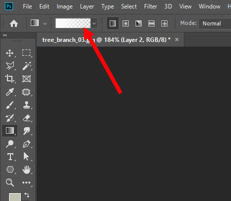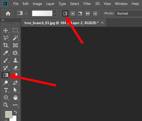 6)좌측 툴바에서 gradient 도구를 선택하고 상단의 옵션에서 linear 유형을 선택합니다.