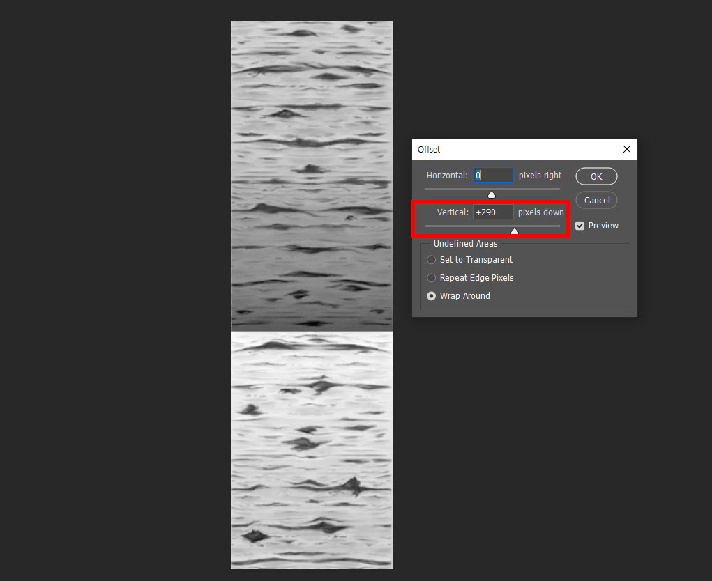 13)수직 오프셋을 설정해도 경계를 확인할수없고 이미지의 음영이 제거된것을 확인할수있습니다.