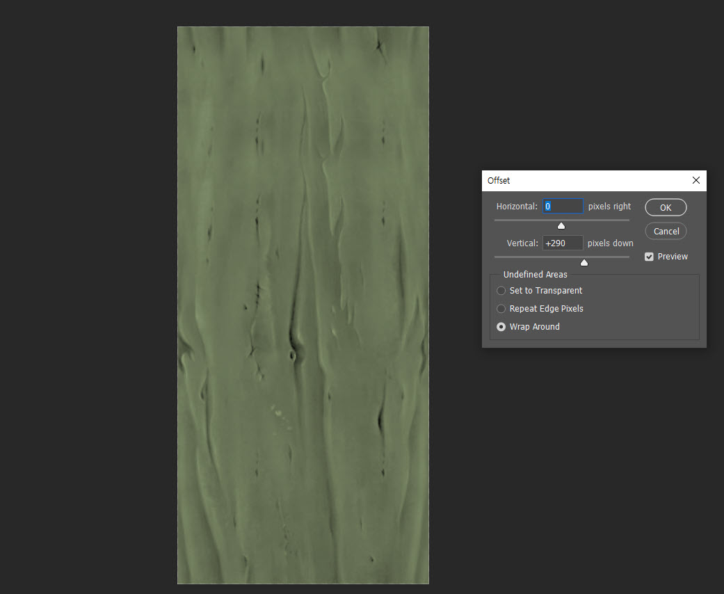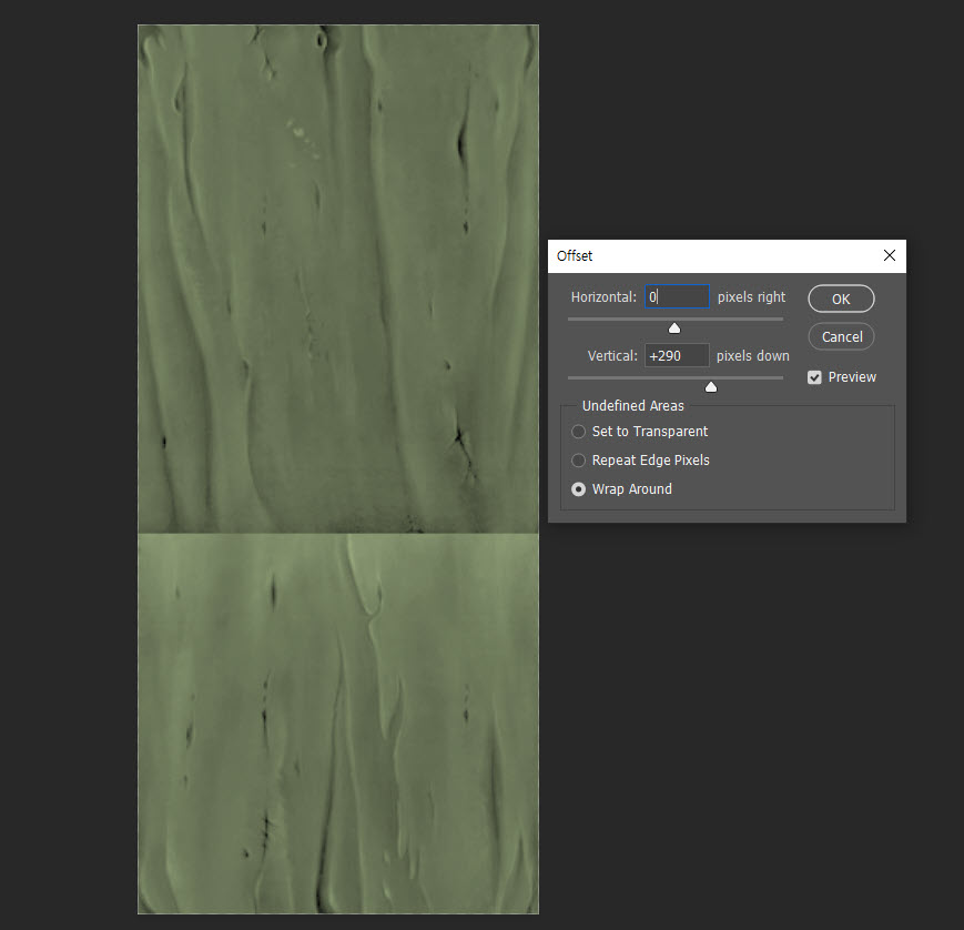 4)오프셋 필터를 사용하면 경계에서 음영을 확인할수있습니다. vertical pixels down 수치를 입력하고 수직 오프셋을 설정합니다.