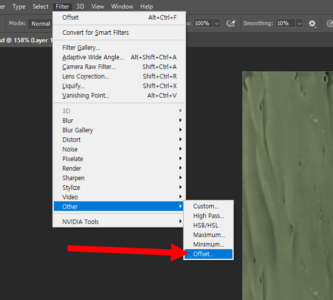 3)상단의 filter 메뉴에서 other의 offset으로 이동합니다.