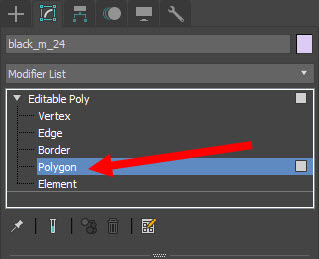 3)하위 오브젝트 수준에서 폴리곤을 선택합니다(polygon)