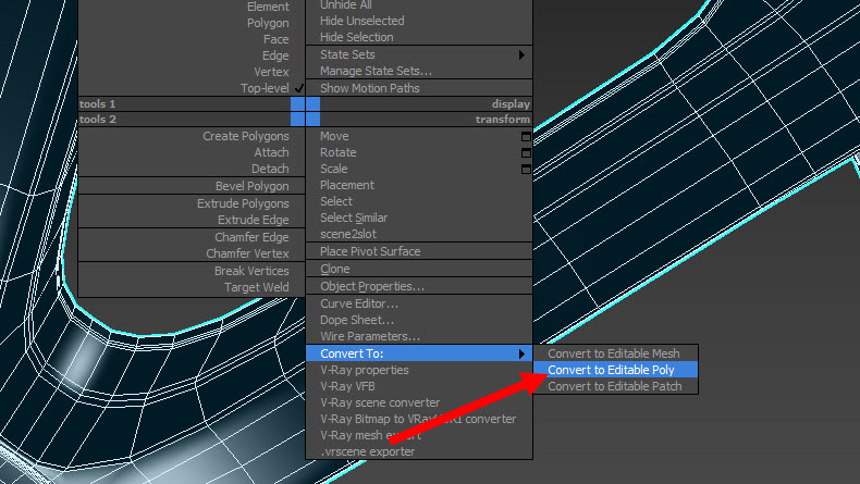 2)오브젝트를 편집 가능한 폴리곤 오브젝트로 변환합니다(convert to editable poly)