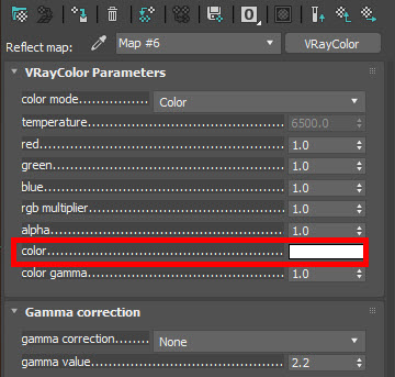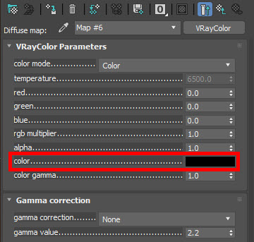 3)VRayColor 맵의 색상을 검정색으로 설정합니다.