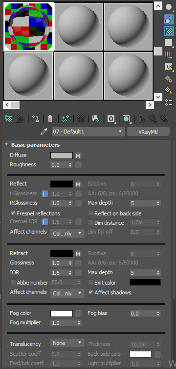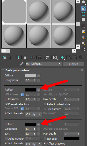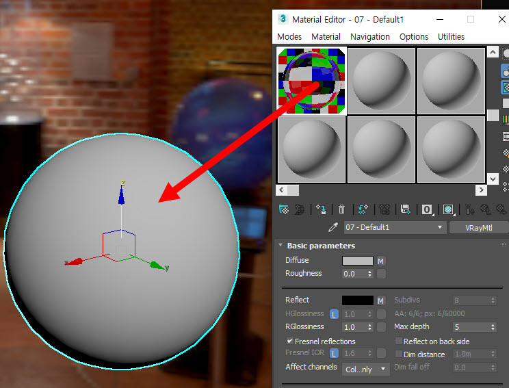 브이레이 재질(VRayMtl)을 사용하여 반사, 굴절 표현하는 방법