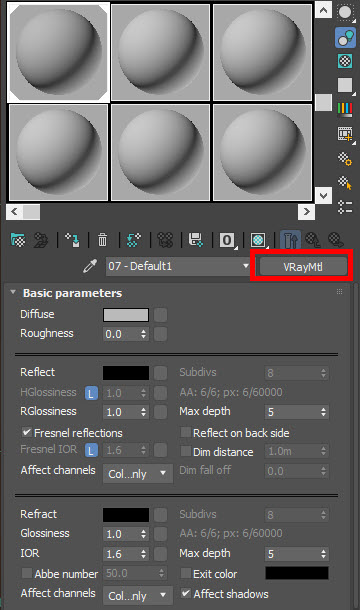 1)새로운 브이레이 재질(VRayMtl)을 생성합니다.
