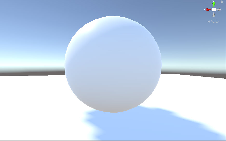 5)스피어 오브젝트 표면의 색상과 음영이 기본 default-skybox 재질의 스카이박스 환경 조명에 의한것을 확인할수있습니다.
