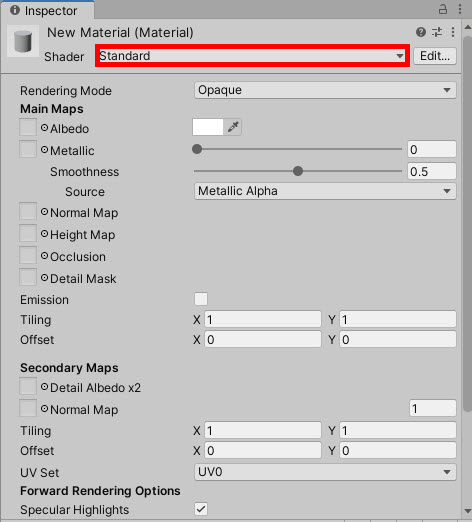 2)오브젝트에 기본 standard 재질을 할당합니다.