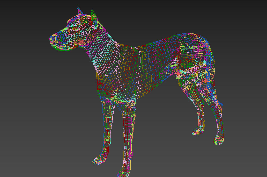 6)지브러시 캔버스에서 3D오브젝트의 폴리프레임을 표시합니다(shift+f) 오브젝트에 다수의 폴리그룹이 설정되어있는것을 확인할수있습니다.