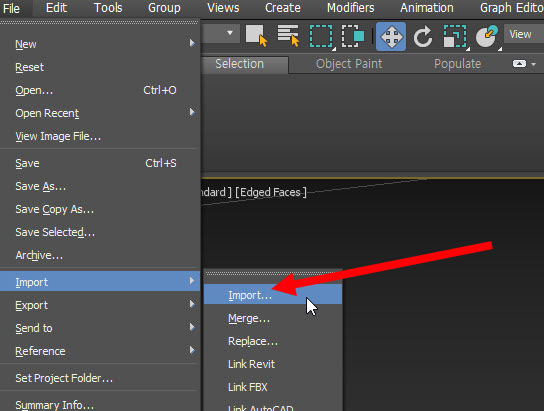 3)내보내기한 obj파일을 3D맥스에서 가져오기합니다(import)