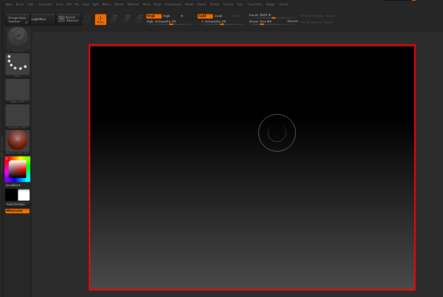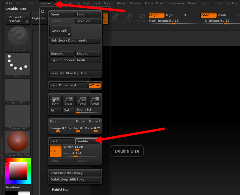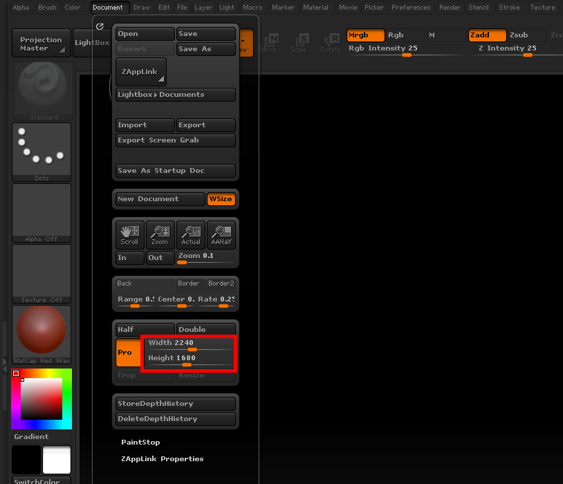 지브러시(zbrush)에서 캔버스의 크기 및 해상도 설정하기