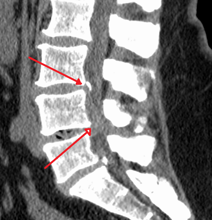 척추변형 - 추간판의(수핵, 섬유륜) 퇴행성 변화(보통 30세이후부터)로 척추에 부착된 추간판이 떨어지며 골극을 형성한다.