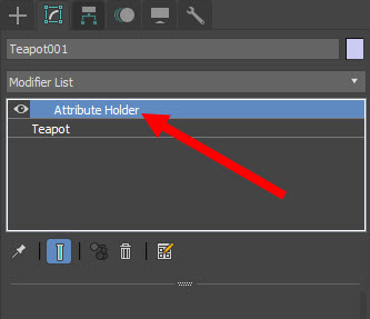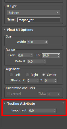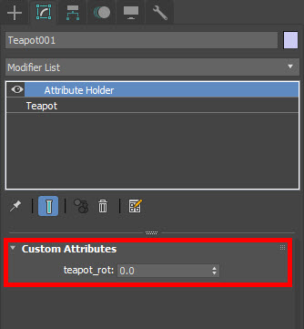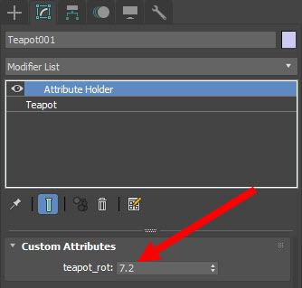 오브젝트에 attribute holder 수정자를 추가하고 parameter editor에서 사용자 정의한 속성의 UI를 추가하는 방법