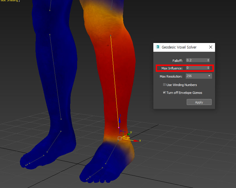 정점에 영향을 줄수있는 최대 본의 개수를 설정합니다. 값이 0이면 3D맥스의 솔버가 자동으로 본의 개수를 설정합니다.