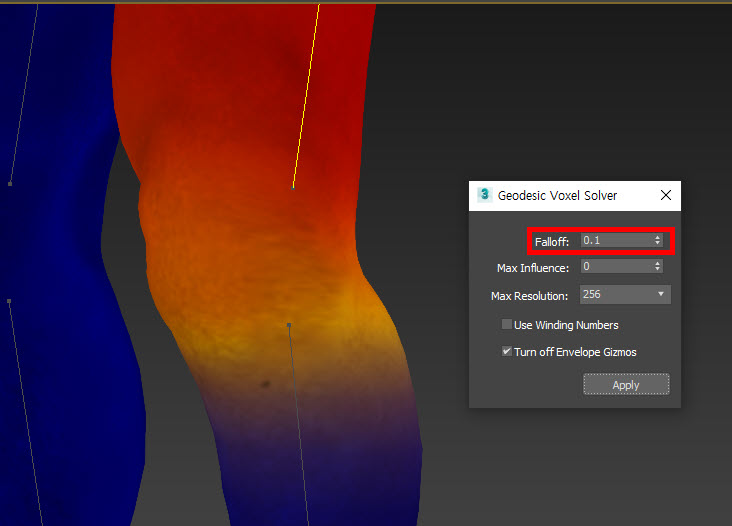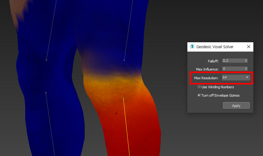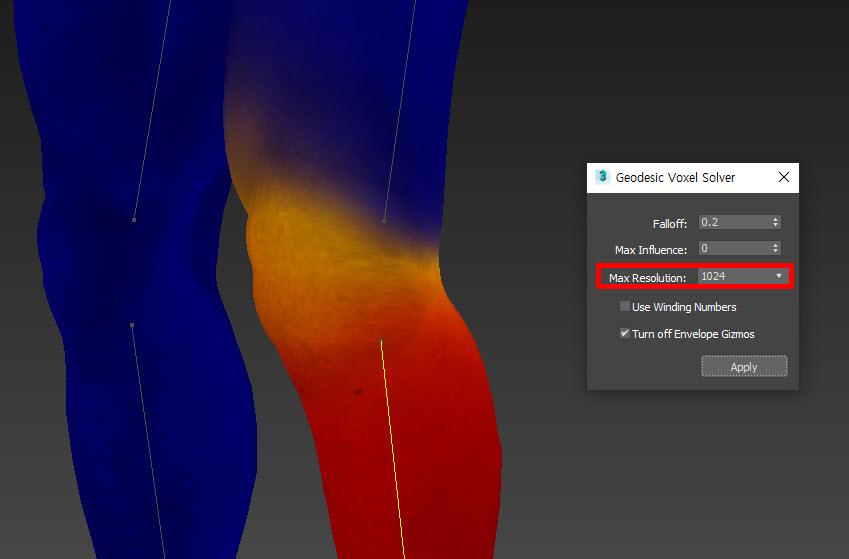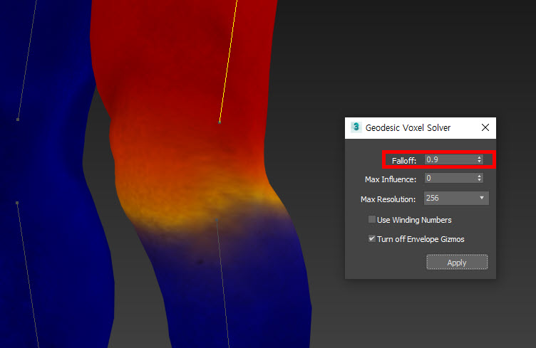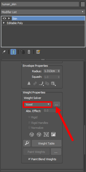 6)skin 수정자의 weight properties에서 weight solver로 voxel을 선택하고 geodesic voxel solver로 이동합니다.
