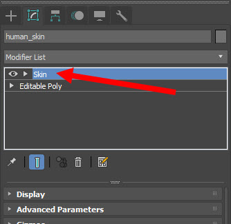 2)캐릭터 모델에 skin 수정자를 추가합니다.