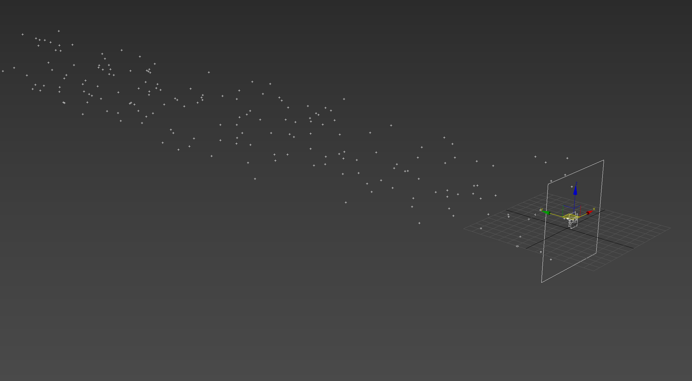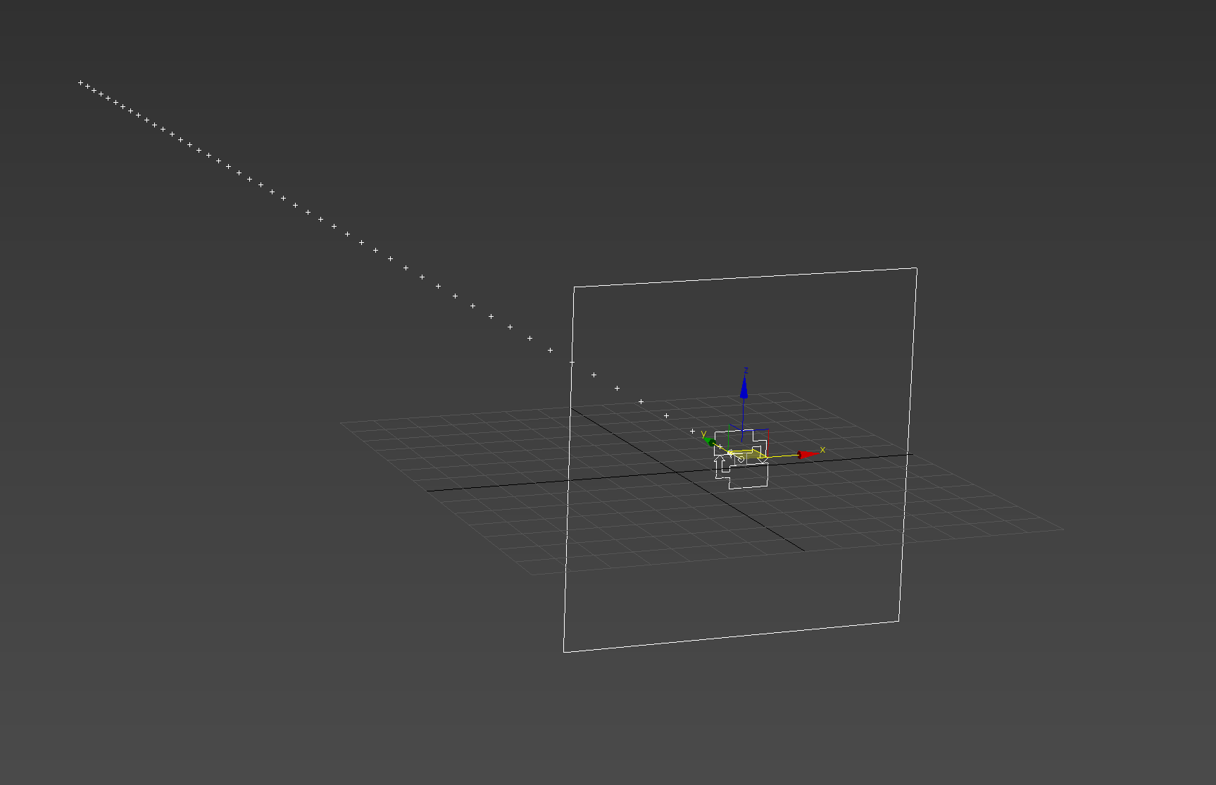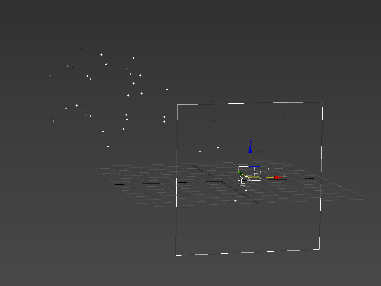 5)씬에서 중앙 로고가 있는 직사각형 아이콘을 확인할수있습니다(Particle Flow Source) 기본적으로 파티클은 PF Source 아이콘에서 생성되고 방출됩니다.