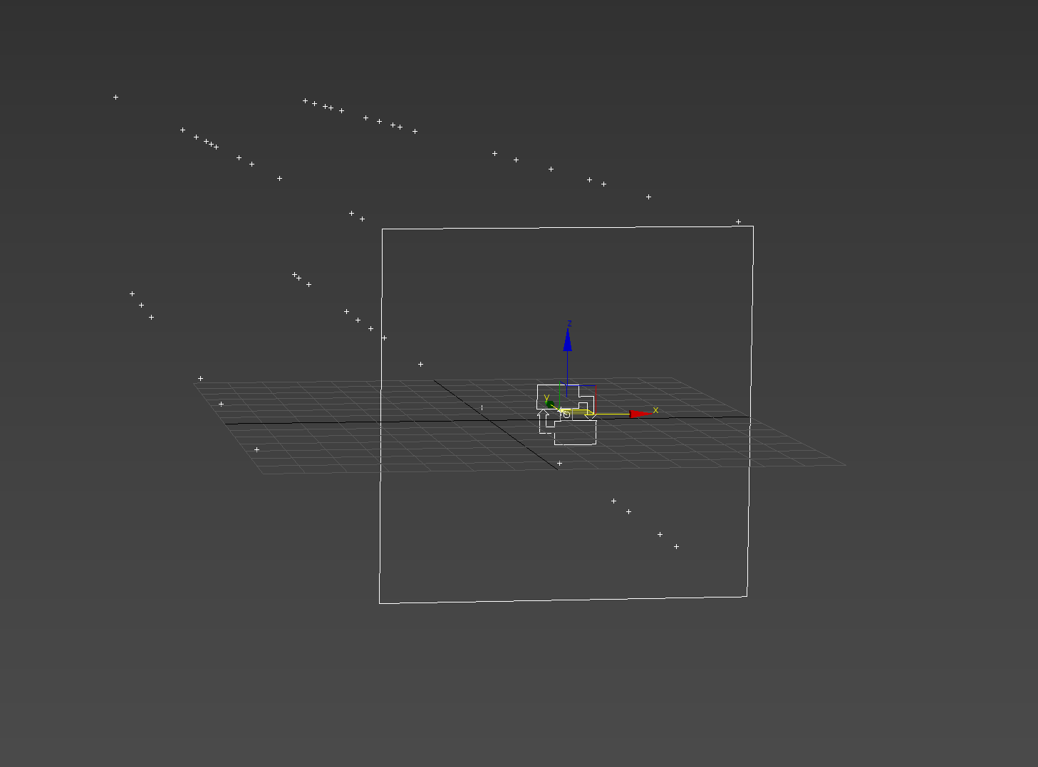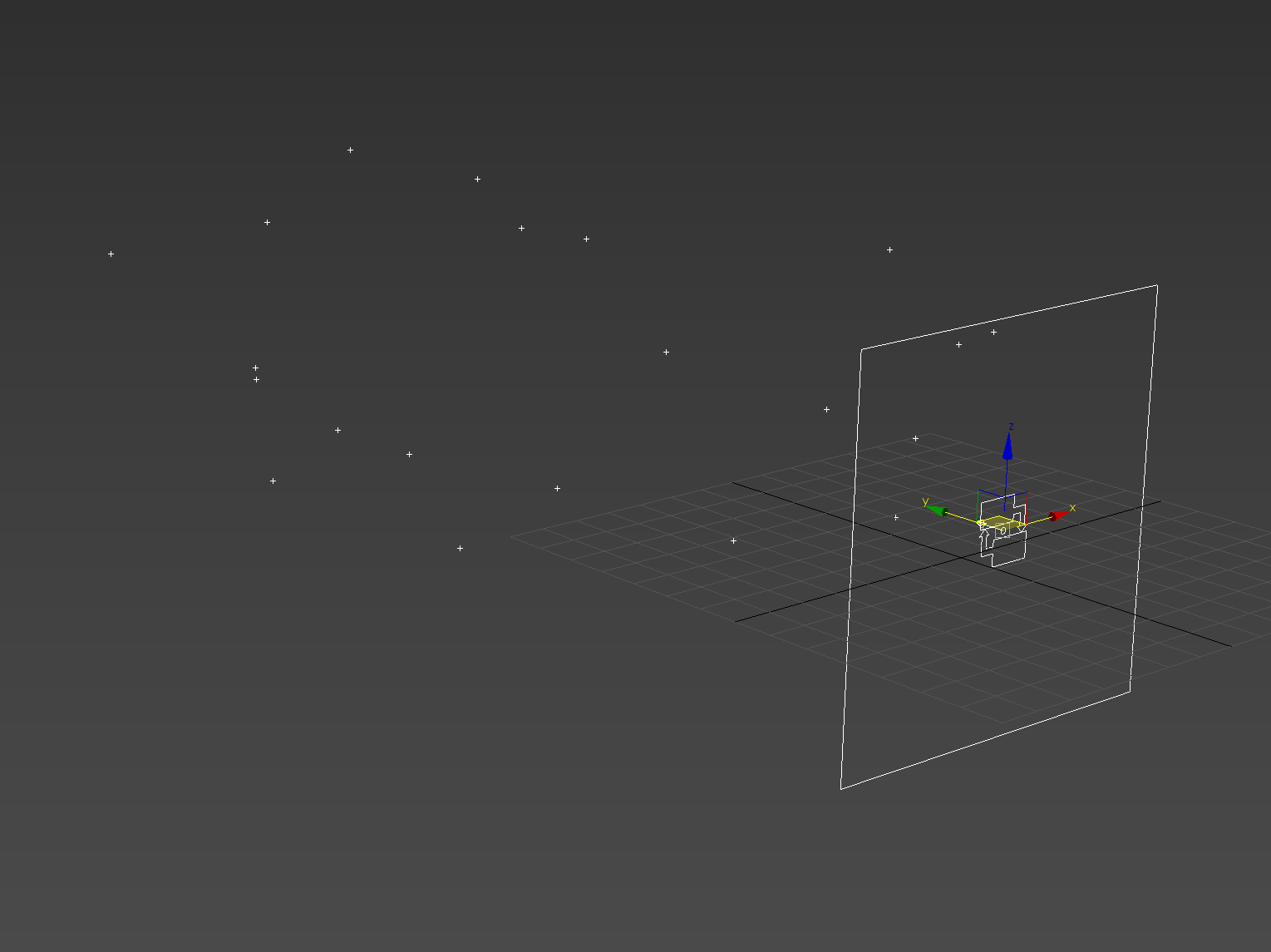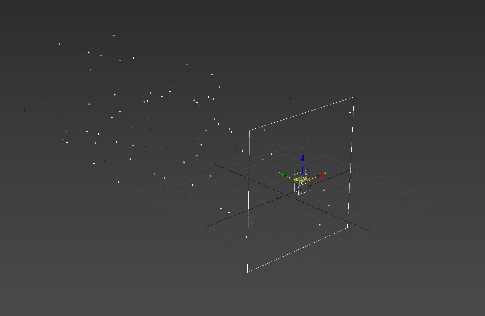 5)씬에서 중앙 로고가 있는 직사각형 아이콘을 확인할수있습니다(Particle Flow Source) 기본적으로 파티클은 PF Source 아이콘에서 생성되고 방출됩니다.