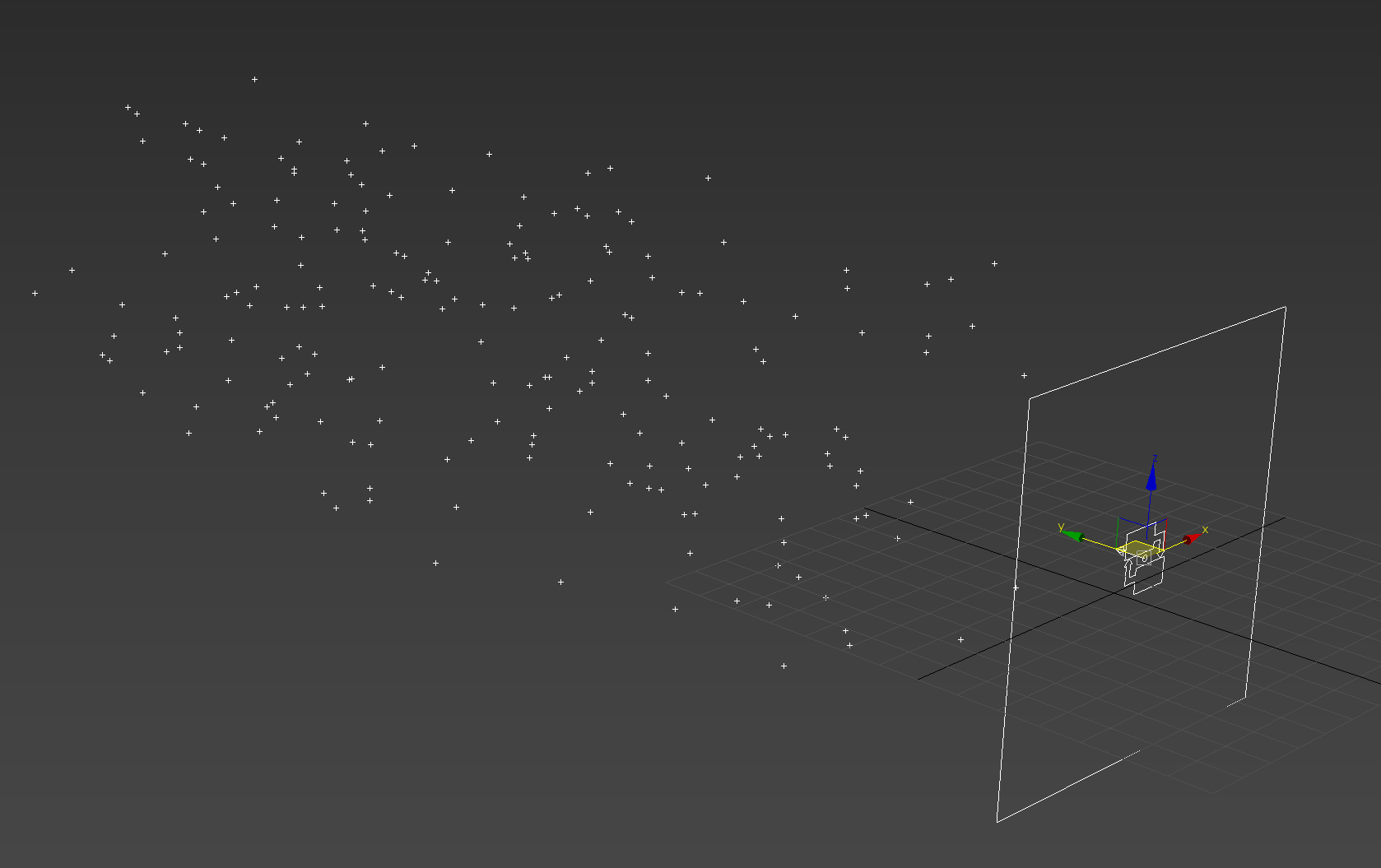 19)뷰포트에서 파티클이 ticks 유형으로 표시되는것을 확인할수있습니다.